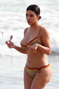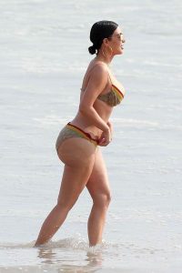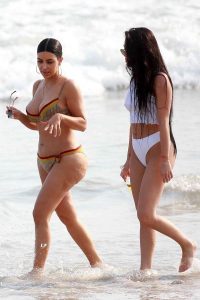 La socialité Kim Kardashian, de 36 años, fue retratada en bikini mientras disfrutaba de un día de playa en México en compañía de su hermana Kourtney y unas amigas.