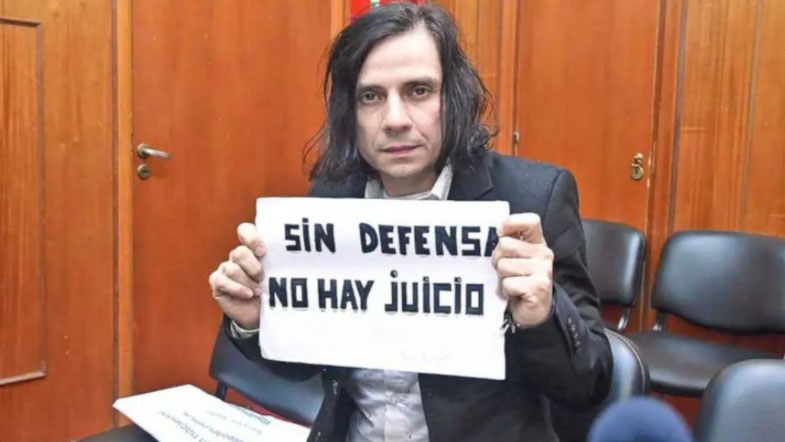 Aldana fue condenado por seis casos de abuso sexual pero durante el juicio oral denunció que estuvo “indefenso”, puesto que el tribunal apartó a su defensor de confianza porque se ausentó en momentos relevantes del debate por lo cual el artista se presentó en las audiencias con un cartel que rezaba “sin defensa no hay juicio”, pese a que era asistido por un defensor oficial.