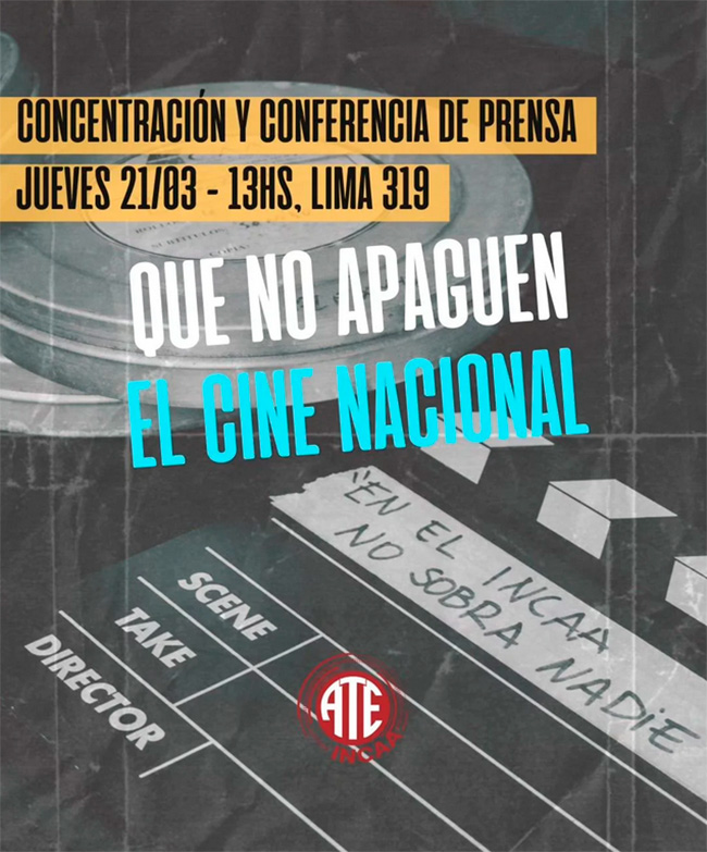 Los trabajadores del INCAA, representados por la Junta Interna de ATE, realizaron este jueves 21 de marzo, desde las 13 hs. una concentración y conferencia de prensa en la sede de Lima 319.