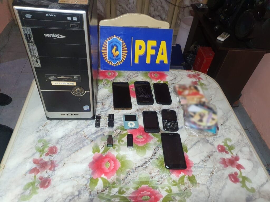 Asimismo, como consecuencia de las requisas se lograron incautar gran cantidad de elementos de interés para la causa, tales como 33 celulares, 10 notebooks, 9 pendrives, 10 C.P.U., 68 CDs, 16 discos rígidos, una cámara digital de fotos, una Tablet y un reproductor multimedia Mp4, todo lo cual será posteriormente peritado con la finalidad de maximizar el material probatorio.