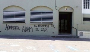 Además de la carta, apareció una pintada en la escuela, amenazante, que decía: «Acordate Adam, el examen es el 21/2».