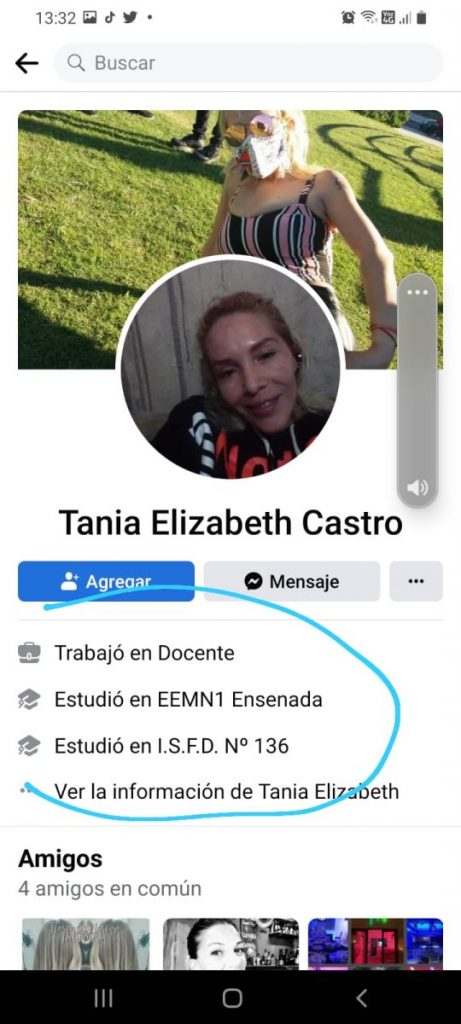 Cabe señalar que Castro se desempeña como educadora, según sus propias referencias ha dado clases en la Escuela de Enseñanza Media 1 de Ensenada y en el Instituto Superior de Formación Docente 136, en tanto en sus redes sociales aparece con el nombre de: “Tania Elisabeth Castro”. Según pudo saber este medio, la acusada no solo enfrenta acusaciones penales sino que desde la Jefatura Distrital de Educación ya tomaron nota de su comportamiento y no descartan iniciar acciones sumariales en su contra.