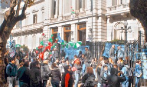 Una multitud de trabajadores judiciales de las 18 departamentales bonaerenses, que protagonizaron hoy un importante paro y movilización en La Plata, permanecieron en tribunales exigiendo al Poder Ejecutivo y a la Corte respuestas a un reclamo unánime del sector: el sistema de porcentualidad salarial.