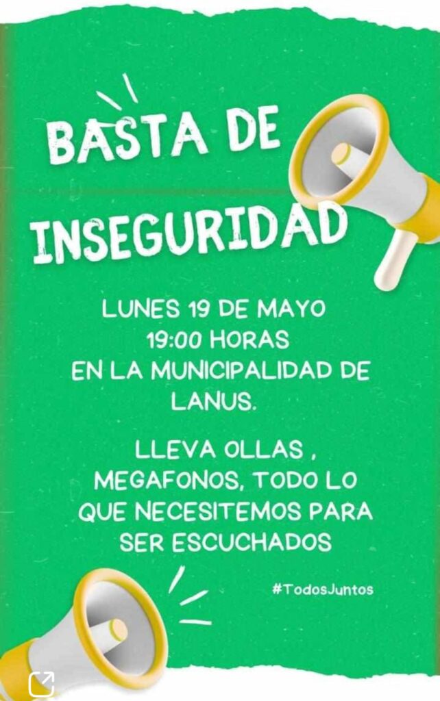 Por otro lado para hoy a las 19hs se convoca a la tercera protesta pidiendo seguridad en la puerta del municipio.