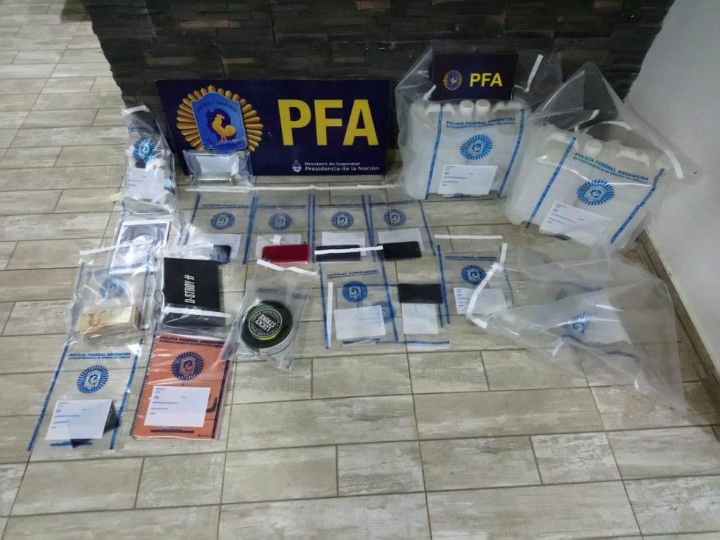 A raíz de ello y con el total de las pruebas obtenidas, el Juzgado de Garantías Nº3 del Departamento Judicial Avellaneda-Lanús a cargo del Dr. José Luis Arabito, Secretaría única a cargo de la Dra Natalia Canavese, ordenó el allanamiento de dicho domicilio. Durante el procedimiento se detuvo a dos personas y se secuestraron aproximadamente siete litros de ketamina, parafernalia utilizada para la dosificación de la ketamina, un frasco con cogollos de marihuana, 56.140 pesos en efectivo, 60 dólares norteamericanos, bidones y botellas vacías, computadoras y demás elementos de interés para la causa.