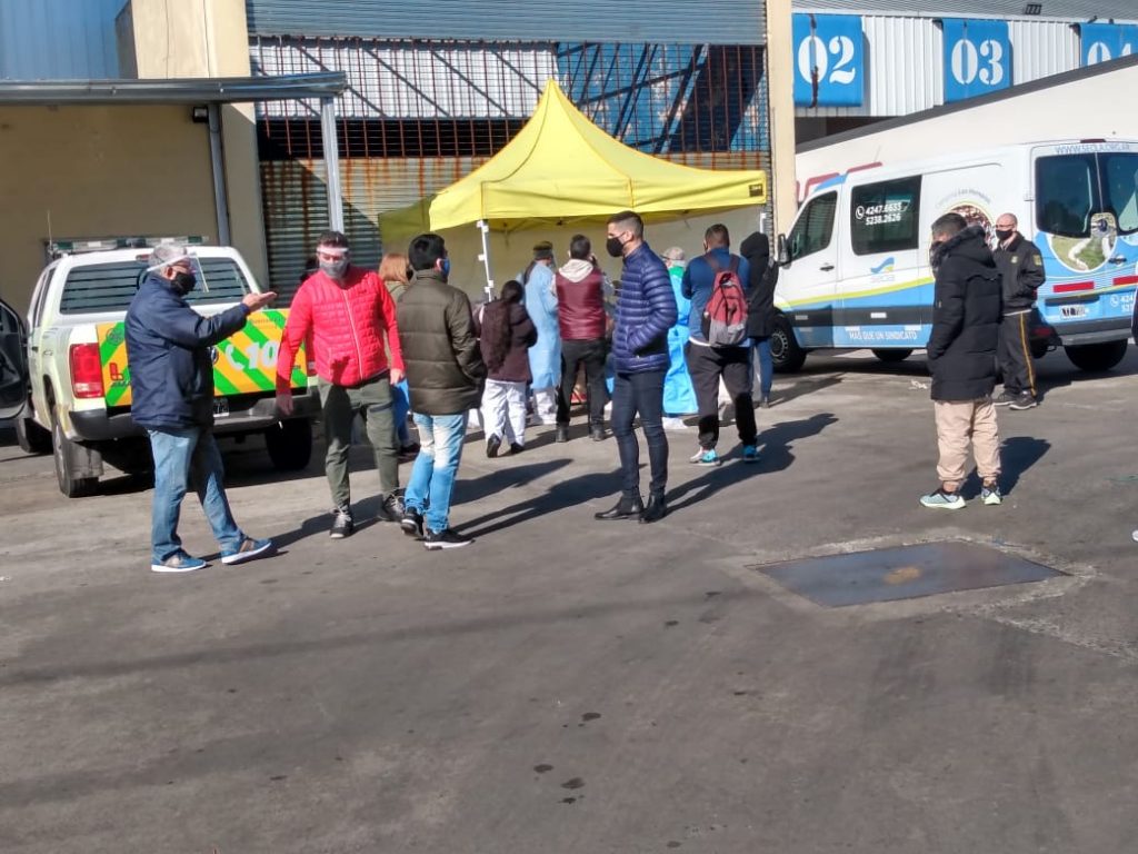 En horas del mediodía una unidad sanitaria del municipio desplegó el personal correspondiente para realizar los testeos en casi un centenar de trabajadores del hipermercado.