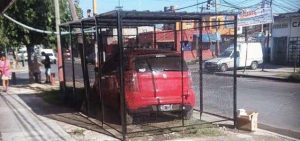 Una familia del barrio de Villa Diamante, en Lanús, construyó en los últimos días una jaula en la mitad de la vereda para guardar el auto por las noches, ante la gran cantidad de robos en la zona.