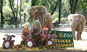 En el zoológico porteño también se festeja la Pascua. Las chef del Zoo y estudiantes de la Escuela de Bellas Artes Manuel Belgrano diseñaron especialmente para cada una de las especies un huevo de pascua particular, relleno de los alimentos favoritos de cada uno, pensando en su decoración para estimular diversas conductas y fomentar el juego.