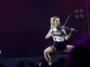 El sonido impecable al igual que los coreografías que acompañaron a los temas musicales en los que se destacó su violín y la fuerza de la artista, quien fue cambiando su vestuario con unos breves intermedios para regresar y continuar con el espectáculo.