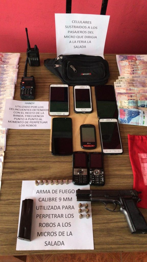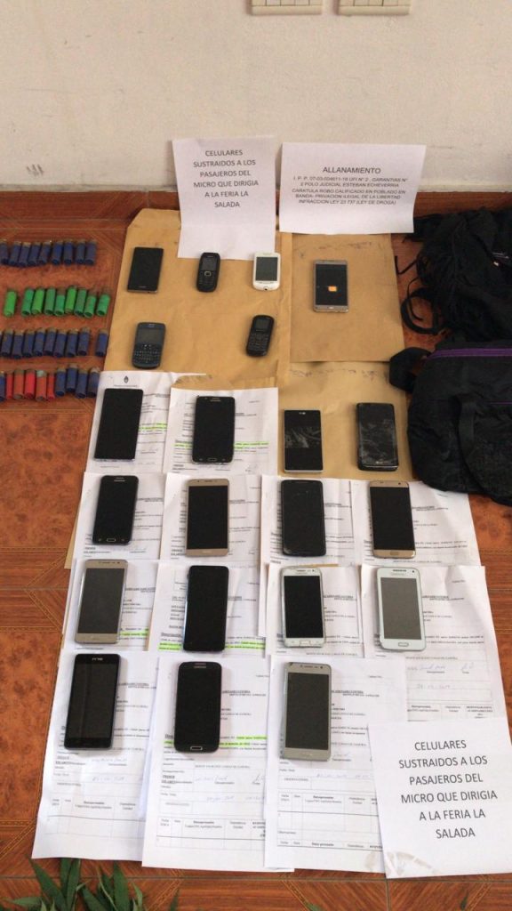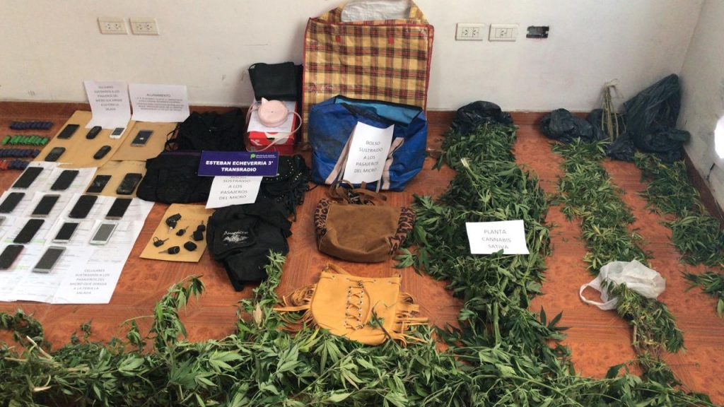 A los individuos, en tanto, los policías les incautaron 61.500 pesos, 21 teléfonos celulares, una pistola calibre 9 milímetros con la numeración suprimida, varias municiones, dos handys, 200 gramos de marihuana, plantas de cannabis, llaves de diferentes vehículos, bolsos y carteras de dama y otros elementos de importancia.