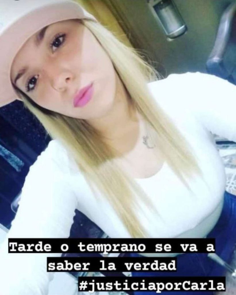 Carla fue hallada ahorcada domingo 6 de diciembre de 2021 por la madrugada en la casa de una amiga, en el barrio de Parque Barón, en Lomas de Zamora. La joven mantenía una relación conflictiva con su novio, a quien había denunciado en sede policial, una semana antes, por violencia de género. En el caso interviene la UFI 9 de Lomas de Zamora, especializada en delitos sexuales, y la UFI 5 a quien le tocaba el caso por estar de turno. Si bien en un principio se creyó que Carla se había suicidado, aún hay dudas en las fiscalías sobre esa hipótesis.