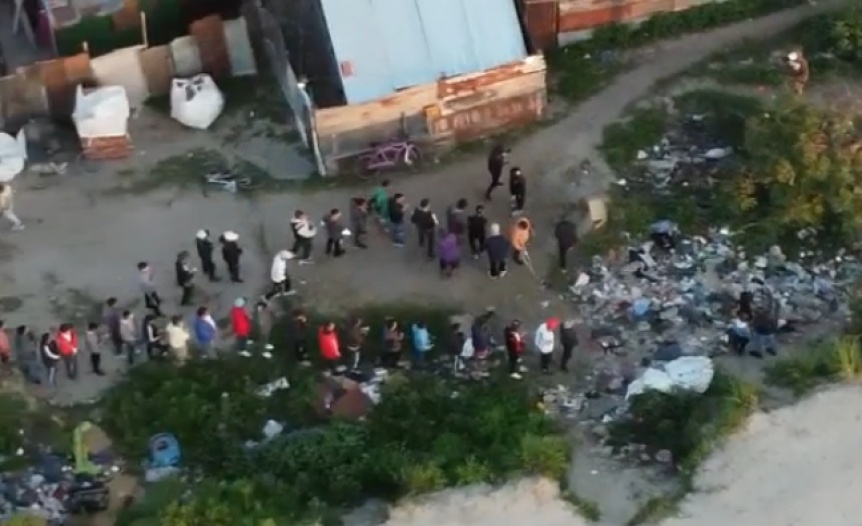 Un drone de la policía captó el momento en el cual los consumidores hacen distintas filas dependiendo de si quieren comprar cocaína o marihuana. Siete personas fueron detenidas durante el operativo.