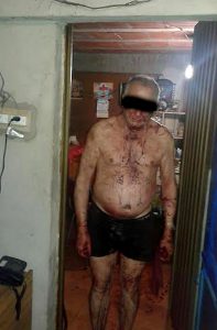 A partir de allí, el acusado en el juicio dio cuenta de lo que sucedió en su hogar, y se auto inflige heridas en su cuerpo. En primer lugar, se realizó cortes en sus brazos, para luego dispararse en la cabeza tres veces, sin lograr su muerte. El acusado es trasladado al Hospital Presidente Perón, donde se recuperó de las heridas. Además, presentaba una herida cortante en sus miembros sexuales, que el acusado recuerda no haberse hecho él.