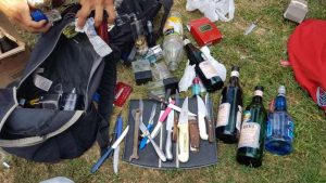 En total, según informaron fuentes policiales, se decomisó 330 botellas de alcohol, pirotecnia, 52 elementos cortantes, marihuana y varias dosis de cocaína que poseían un grupo de hinchas del «Millonario».