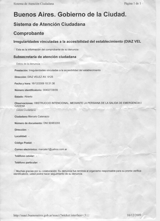 El delegado de los trabajadores despedidos, realizó una denuncia en el CGP Nº6 del barrio de Caballito el día 16 de diciembre, sobre las obstrucciones a las puertas de emergencia al colocarles cadenas y candados entre otras medidas de seguridad. Pero nada se ha hecho al respecto con el peligro que corren los habitantes del edificio que se erige sobre la editorial, si tenemos en cuenta que los libros son materiales combustibles.