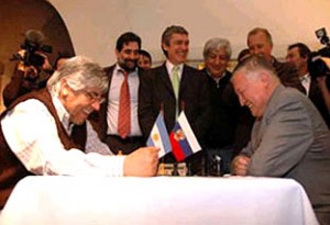 Karpov, campeón del mundo en los períodos 1975-1985 y 1993- 1999, llegó a Argentina por intermedio del gobierno bonaerense. El gran maestro ruso, quien se unió con “su antiguo rival y quizás antiguo enemigo” Garry Kasparov en busca de la presidencia de la FIDE, sostuvo que “en esa unión y en las políticas que se implementen” en caso de llegar a ese cargo, también “está la clave para que el ajedrez se masifique”.