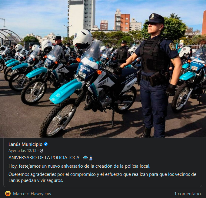 En un acto de demagogia que tanto les gusta montar al macrismo, con la complicidad de los medios que por vivir de la pauta no interpelan ni cuestionan las noticias que reciben para publicar, Grindetti, genera más dudas que certezas al afirmar falsamente que el día 2 de julio se celebra un nuevo aniversario de la Policía Local, o es un mentiroso, un ignorante o un oportunista, él sabrá quien le hace los discursos y es su responsabilidad estar rodeado de incompetentes para que lo asesoren.
