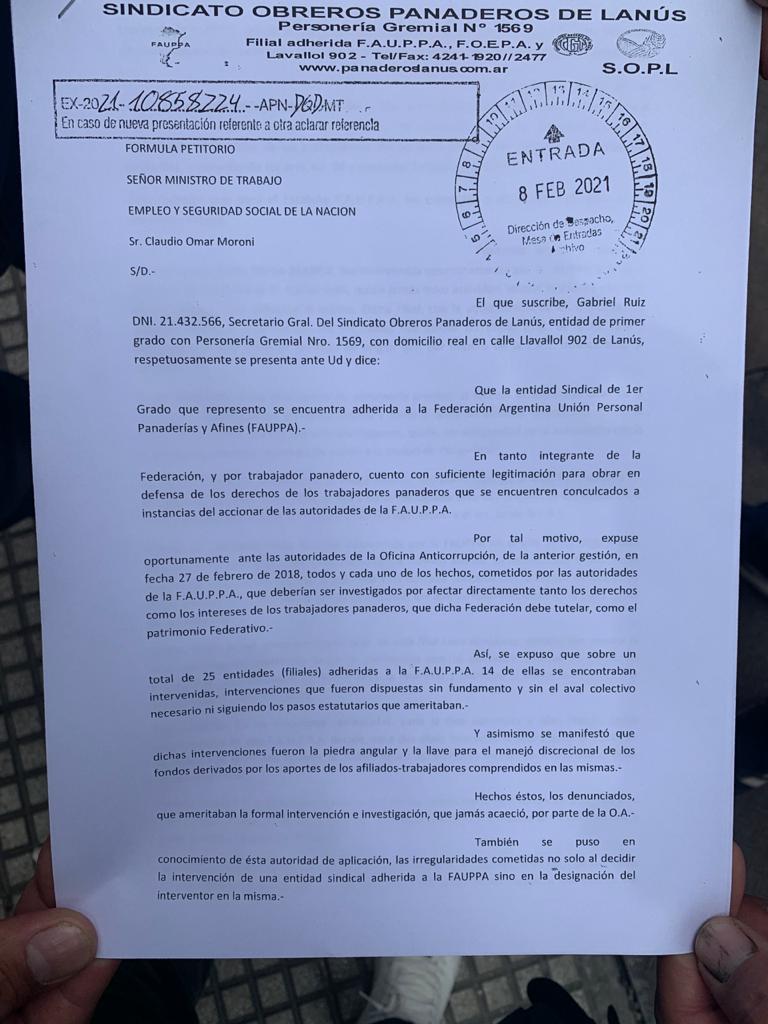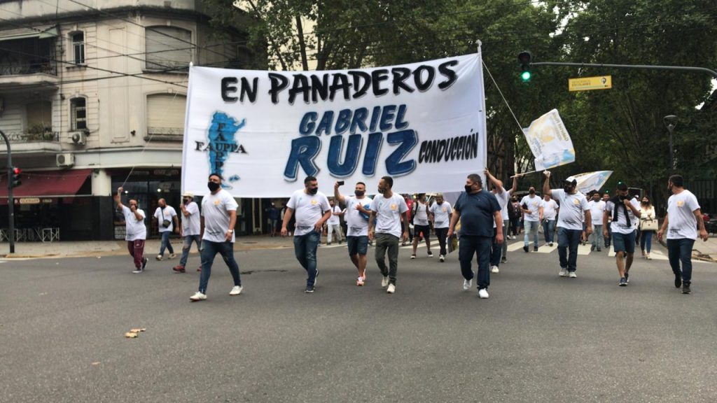 Encabezado por el titular de la seccional Lanús ;Gabriel Ruiz los panaderos se movilizaron a la sede de la FAUPPA , y el Ministerio de Trabajo de la Nación.