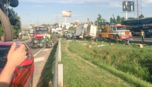 Dos camiones chocaron en el kilómetro 26 de la ramal Pilar de Panamericana, sentido Capital Federal, por causas que se investigaban.
