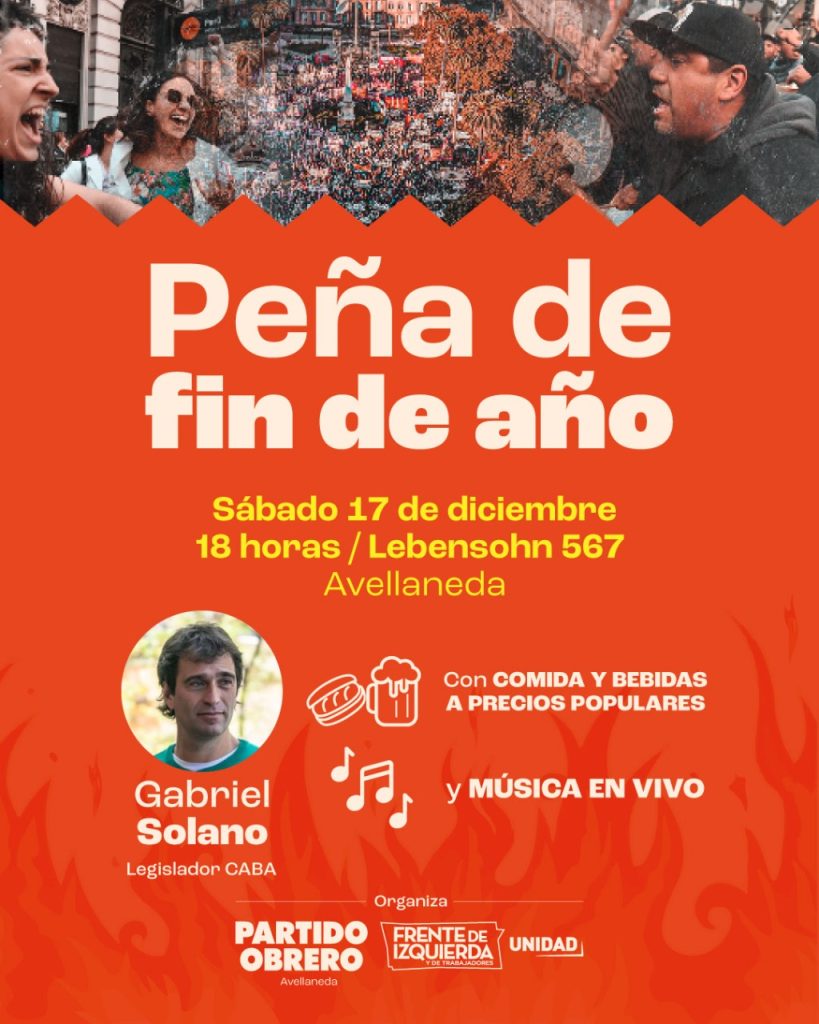 Peña de fin de Año del Partido Obrero en Avellaneda admin / diciembre 17, 2022 ⚠️ Hoy. Sábado 17/12 18hs. Lebensohn 560? Peña de fin de año del Partido Obrero? Música en vivo? Buffett con precios populares Share on FacebookTweet