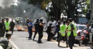 La protesta generó la intervención de policías locales, que fueron repelidos con piedras y botellas, tras lo cual fueron enviados guardias de infantería y de la Gendarmería.