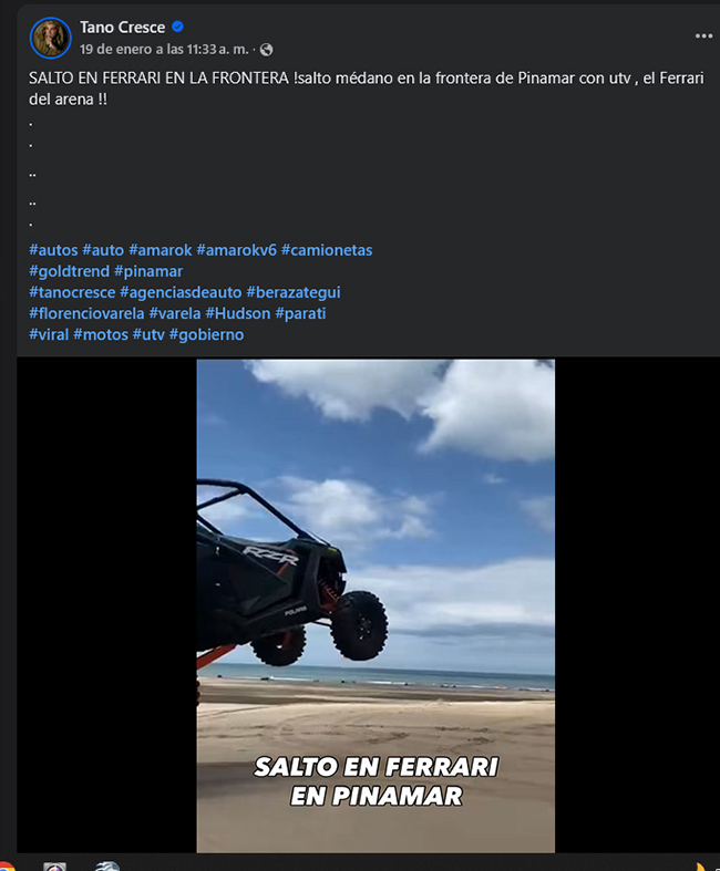 Al parecer en el municipio y la policía no se enteraron NUNCA de las acrobacias que el irresponsable sube a sus redes y si tenemos en cuenta que dicen se trata de propiedad privada, los Fiscales de Pinamar, no aprendieron lo que es actuar de oficio.