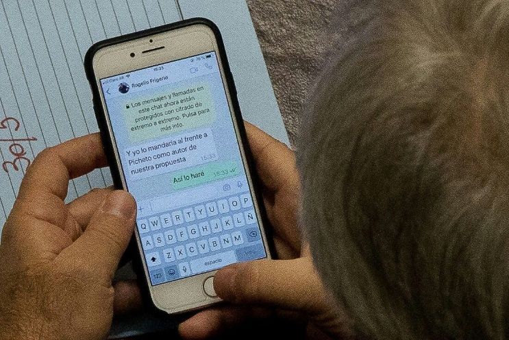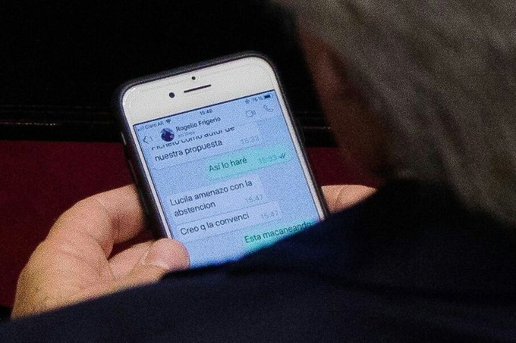 Un fotógrafo captó el momento en que el senador de Cambiemos recibe indicaciones a su celular por parte del ministro del Interior mientras se debatía la ley de tarifas en el Senado.