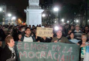 Unos 400 manifestantes se reunieron en el edificio Guardacostas de Prefectura en Puerto Madero y desde allí marcharon a Plaza de Mayo por la Avenida Madero. El grupo fue «custodiado» por agentes de la Policía Federal que les iban indicando el camino «pacífico».