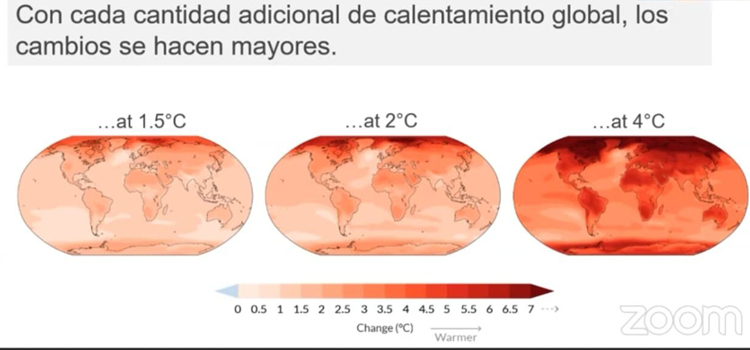 A su vez, Rivera explicó que, a partir del cambio climático, se registran más eventos de calor extremo, lluvias torrenciales más frecuentes e intensas, incrementos de sequías en algunas regiones y calentamiento y acidificación en los océanos.