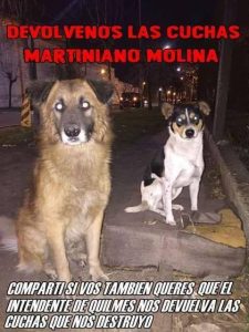 Una polémica medida del intendente Martiniano Molina ha generado en las redes sociales el repudio de gran parte de los vecinos y de animalistas que repudian la orden de desalojar a dos perros comunitarios, que como en todo lugar donde hay policías suelen compartir horas y cuidar a los efectivos policiales dando aviso ante extraños.