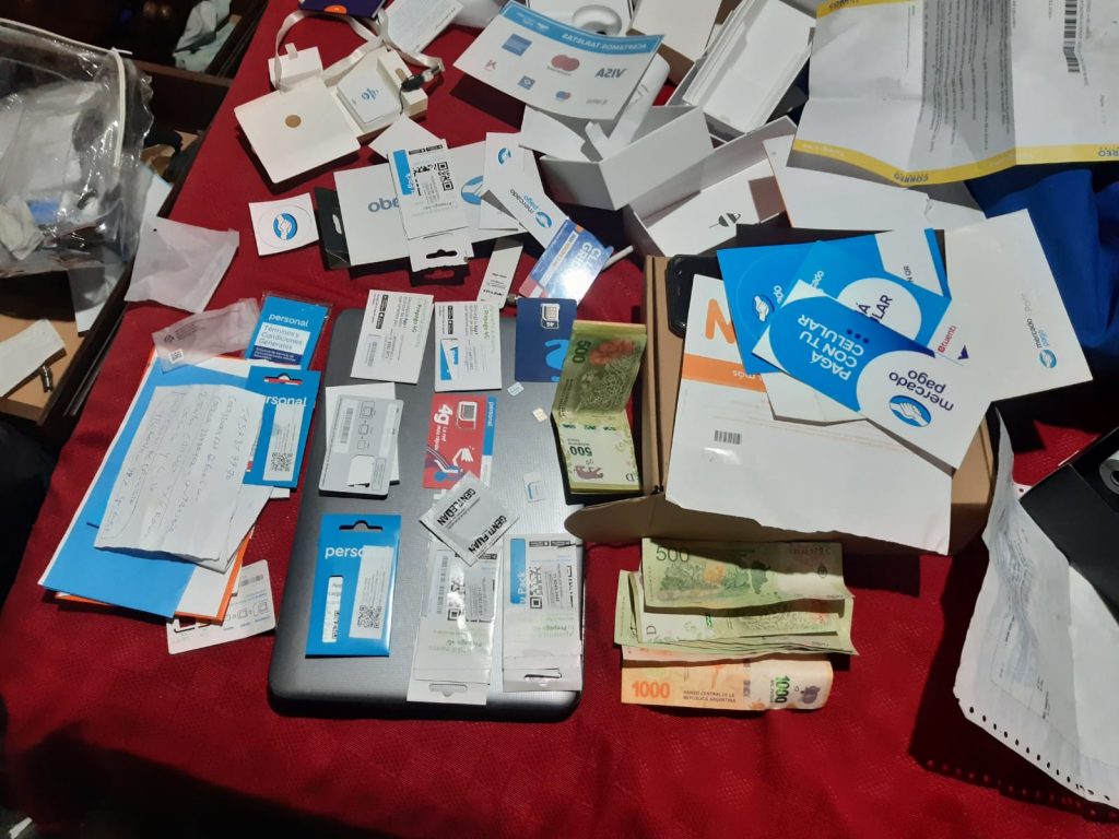 Tras las tareas de investigación, se pudo identificar y localizar a un hombre en una vivienda en Quilmes que quedó imputado, tras un allanamiento en el que se secuestraron computadores, chips telefónicos y tarjetas sim, posnet de cobro, teléfonos celulares y un arma de fuego.