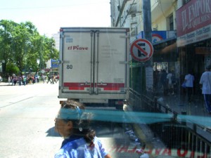 Ya fuera del local y con una muy mala impresión como para recomendar no consumir productos de ese local, a la vuelta, se encontraba estacionado en una zona prohibida y entorpeciendo a los pasajeros de la línea 85, un camión con cámara de frío de la firma El Piave, cuya patente delantera es BRQ 845, ya que la trasera no la posee. No es la primera ves que dicho camión estaciona en lugar prohibido a pesar de que se ven pasar por la calle a Agentes de Tránsito que parecen tener algún problema ocular grave para no ver un camión Mercedez Benz D-601.