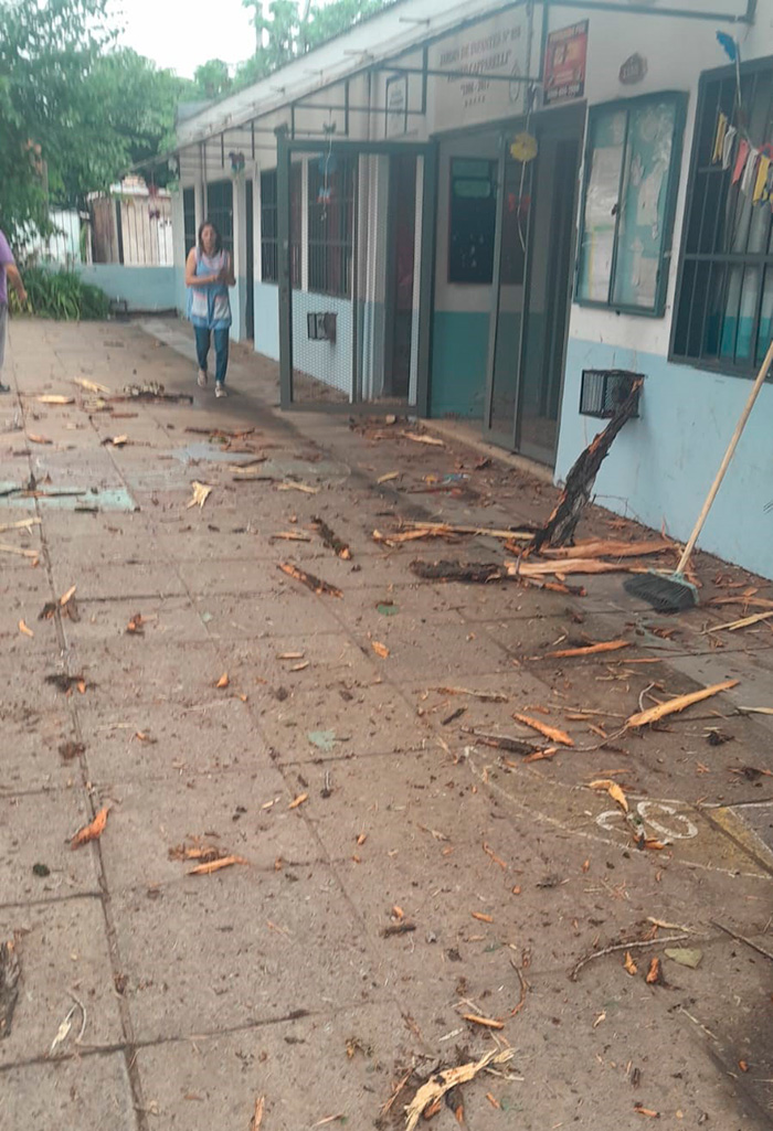 El impacto ocasionó roturas en puertas y ventanas, árboles dañados y marcas visibles en la estructura del edificio. Afortunadamente, al tratarse de un día no laborable, no había personal ni niños en la escuela en el momento del incidente. Sin embargo, el estruendo provocado por el rayo fue tan fuerte que se escuchó en varias cuadras a la redonda, generando gran preocupación entre los vecinos.