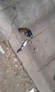 Alertados del hecho, efectivos de la comisaría 1ra. de Quilmes arribaron al lugar y hallaron a la víctima tendida en el suelo junto a un revólver calibre .38, varias vainas y un cuchillo.