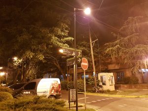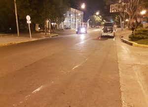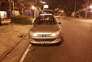 Hoy siendo aproximadamente las 03:12 hs. en momentos que circulaba por la Av. Del Libertador y Dr. A. Aguado, me sorprendo por un estruendo en la parte delantera derecha de mi auto, sin entender muy bien que había pasado, avanzo uno metros más para detenerme en un lugar iluminado y donde hay una garita de seguridad.