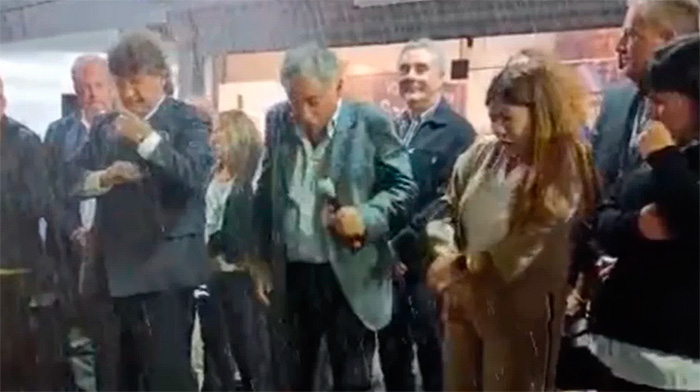 Ocurrió durante la inauguración de un local partidario en San Martín, provincia de Buenos Aires. En los videos se observa que el líquido fue arrojado desde arriba.
