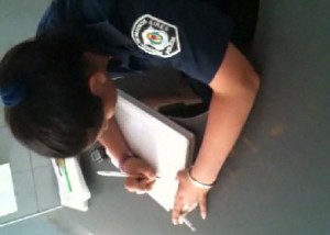 En el video se puede ver como la Oficial Luna se encuentra fumando en un destacamento policial comisaría 4ta, de San Vicente, frente a una señora mayor, menores y personas asmáticas.