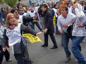 Gremialistas docentes santacruceños en paro desde el 15 de abril por demandas salariales seguían hoy con la protesta pese a la intimación a acatar la conciliación obligatoria y las multas de 1.000 pesos, impuesta por la justicia, y de 50.000 y 700.000 que dispuso ayer la Secretaría de Trabajo local.