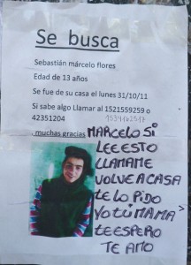 Familiares del joven Sebastián Marcelo Flores, quien desapareció el 31 de octubre del 2011, buscan al joven y solicitan la ayuda de la sociedad para poder encontrarlo.