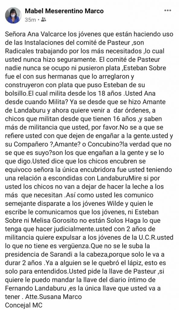 Ya van a seguir las denuncias cruzadas del rejunte en Avellaneda que apoya a Facundo Manes, todos tienen varios archivos que no resisten, compren pochoclos que esto, recién comienza. El culebrón política promete traer más historias, otros radicales están preocupados que las mujeres no se queden calladas y ardan las redes, un tal Rodrigo, ex concejal, ahora funcionario adjunto de una dependencia que no recuerdo el nombre tiene un perfil bajo, pero si la rubia habla esto no para más.