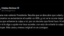 La ex vicepresidenta apuntó contra el mandatario por haber decretado un incremento para él y sus funcionarios en un 48 por ciento. “¿Y no se le ocurre mejor excusa que echarme la culpa a mí, por un decreto que firmé hace 14 años?”, cuestionó La ex vicepresidenta Cristina Kirchner le respondió con dureza al presidente…