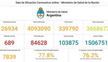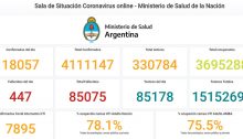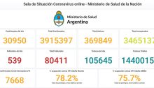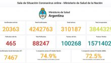Coronavirus: Se registraron 465 muertes y 20.363 contagios en todo el país