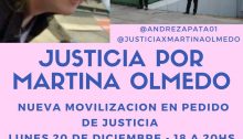 Este lunes 20 de diciembre, de 18 a 20, los familiares de Martina Olmedo, de 19 años, se movilizarán por segunda vez hasta la puerta del Sanatorio Urquiza exigiendo justicia por la muerte de la joven. Los familiares consideran que hubo negligencia del Sanatorio Urquiza en la muerte de Martina, y recuerdan las reiteradas situaciones…
