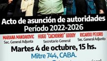 La lista 1 «Germán Abdala» se impuso ampliamente en las elecciones de la Central del 11 de agosto pasado, y consagró a Hugo «Cachorro» Godoy como Secretario General, junto a Ricardo Peidro y Mariana Mandakovic como secretarios generales adjuntos. El acto de asunción se realizará este martes 4, desde las 15 horas, en la nueva…