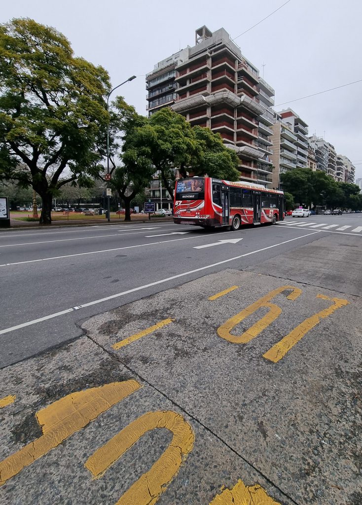 El domingo 25 de julio del 2021, a las 13:04, el chofer del interno 44 de la línea 67 se ganó el premio al imbécil del día al dejar en la parada a una joven que esperaba en el lugar correcto, como se puede apreciar en la fotografía el colectivo circula por los carriles centrales, por donde además no debería circular si es que tiene pensado parar a los pasajeros que esperan.