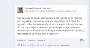 Con respecto a las posibles causas de la agresión, el edil concluyó: «Pasa por el tema de la seguridad. En Tres de Febrero está complicado y la gente se siente insegura. Este conflicto lo tiene a maltraer al gobierno municipal y cuando no hay respuestas para darle a la gente, aparecen estas cosas». Y cerró: «Es un hecho lamentable porque demuestra que hay violencia e intolerancia».