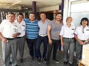 En un micro de UPSRA, en el que cargaron presentes que distribuyeron entre los afiliados al sindicato, el equipo dela intervención visitó a los vigiladores que se desempañan en las empresas Fargo, Pacheco Trade Center, Telecom, Automotriz Ford y Volkswagen, Autopartista Lear, Centro de Distribución Carrefour de la zona norte y laboratorios Bagó.