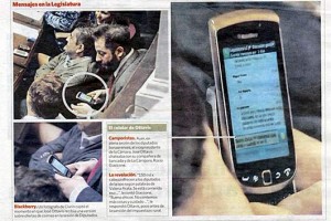 En el recinto, durante la sesión, un fotógrafo del diario Clarín (no identificado con nombre y apellido, sino como «Agencia La Plata») captó varias imágenes de José Ottavis, vicepresidente de la Cámara de Diputados, líder de La Cámpora, mientras chateaba con su compañeros de bancada Miguel Funes y Rocío Giaccone.