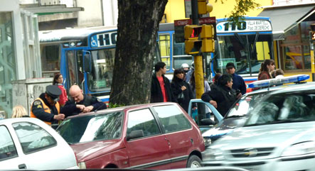 Barrio de Villa Crespo, intersección de las calles Cnel. A. Figueroa y Warnes, jueves 12 de agosto 12:55 hs. Un móvil policial estacionado en la ochaba y dos policías al costado de un auto particular, la gente que pasa y mira, ¿un procedimiento policial?.