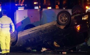 De acuerdo a lo declarado por algunos testigos presenciales, el Clío negro de cinco puertas (patente OFP122), «venía a gran velocidad zigzagueando» por la autopista Dellepiane en dirección hacia el centro porteño, cuando rozó a otro auto que se circulaba en la misma dirección, perdió el control y posteriormente volcó.